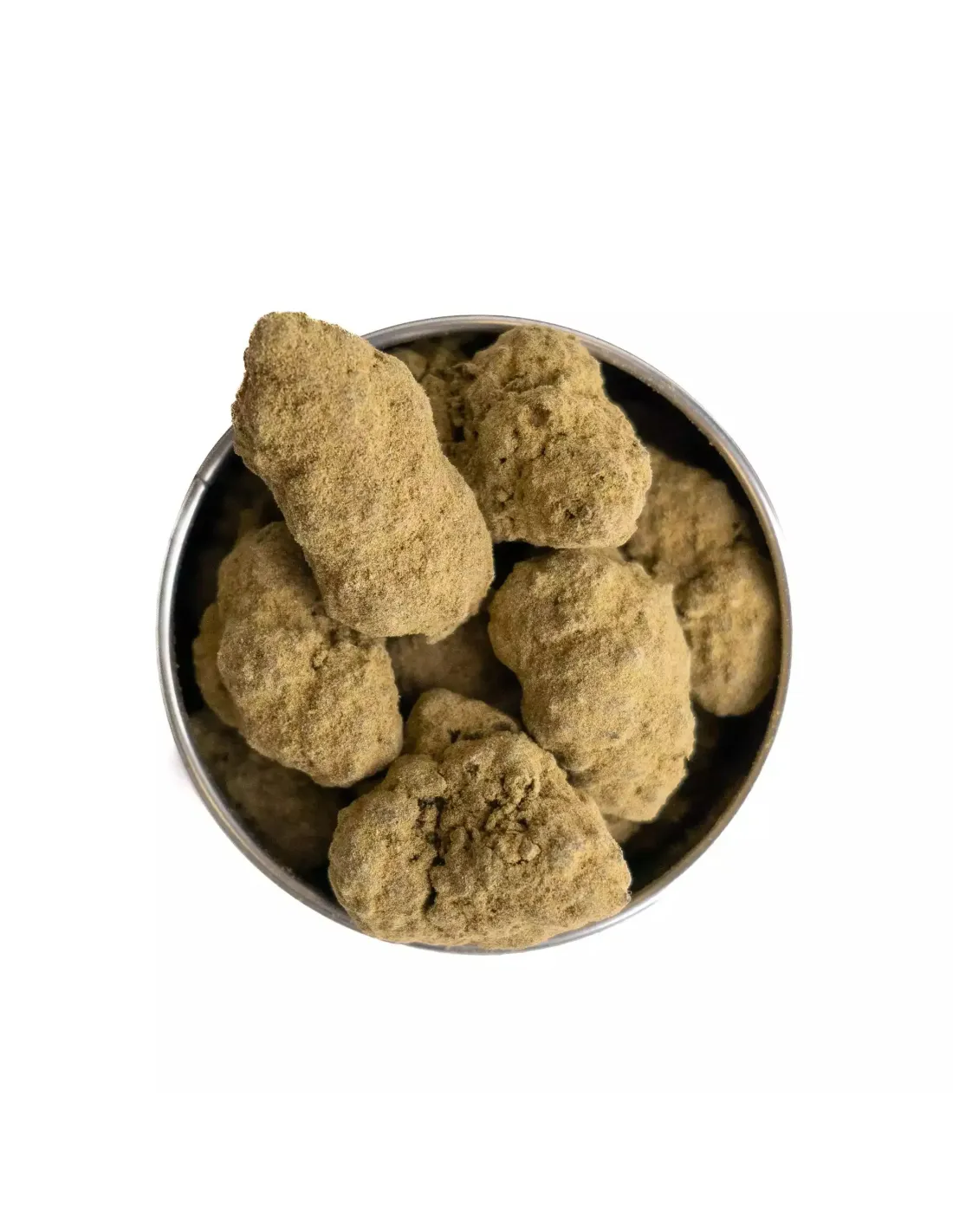 Le Moon Rock THCX n'est pas une simple fleur, c'est un concentré de savoir-faire. Chaque "roche" commence par une tête indoor premium, plongée dans un distillat de THCX pur, puis généreusement roulée dans du kief (pollen de haute qualité).
